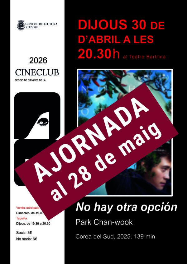 Us informem que hem ajornat al 28 de maig la projecció d’aquesta pel·lícula del nostre Cineclub, que estava prevista el 30 d’abril.