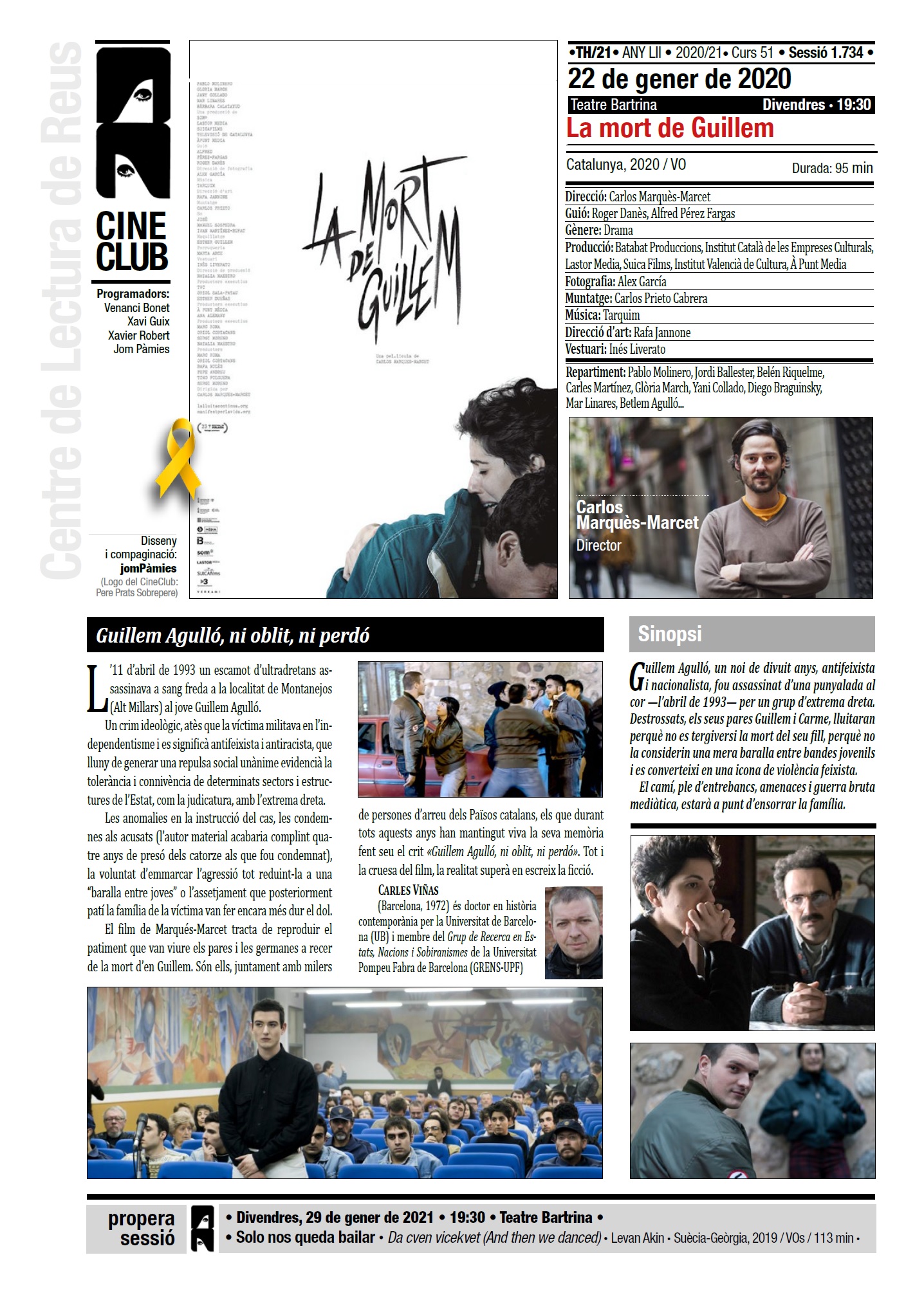 Divendres 22 de gener, a les 19.30, al Teatre Bartrina, Cineclub: La mort de Guillem, de Carlos Marquès-Marcet. Catalunya, 2020. VO. 95 min. Venda d’entrades: els dimecres, dijous i divendres, de 18.00 a 20.00, al vestíbul de la Biblioteca.