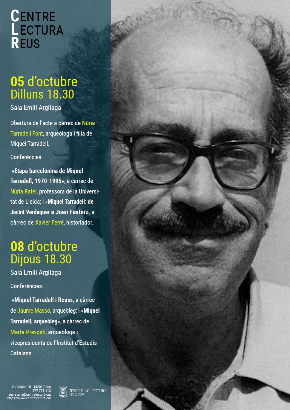 📢 Dilluns 5 d’octubre comencem al Centre de Lectura el simposi «Centenari Miquel Tarradell Mateu (1920-1995), arqueòleg, historiador i Premi d’Honor de les Lletres Catalanes». Miquel Tarradell fou un dels intel·lectuals catalans més destacats del segle XX. El centenari del seu naixement és una ocasió excel·lent per recordar la seva figura, potser injustament oblidada.