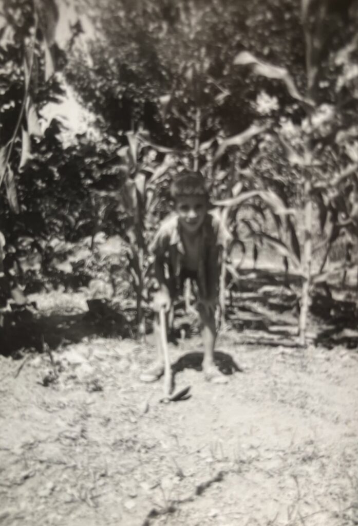 La petita plantació de moresc del meu avi també va ser objecte del seus experiments i malifetes. Era un petit bancal de moresc per donar a les gallines, encara que els turistes francesos que començaven a arribar per la zona el volien comprar per menjar-se’l. Aixada en mà i d’amagat de l’avi el Ton volia esbrinar què passava si tallava les arrels de les plantes o si no els arribava l’aigua i el que feia era canviar la direcció dels reguerols, llavors l’aigua s’escapava per algun lloc no previst i s’inundava el tros. L’avi sempre que hi havia algun incident no tenia cap dubte de qui era el culpable i cridava: Ton! Què has fet?