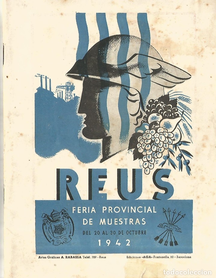 Sobre el perfil del déu Hermes-Mercuri hi ha els quatre pals ondulats corresponents a l’heràldica provincial. Al seu davant, diverses i altes fumeres i una grossa grua que simbolitzarien les indústries fabrils i de la construcció. Gairebé al clatell del déu, hi ha dibuixades pomes, peres, raïms i altres fruites que representarien l’agricultura. La conjunció volia ser, és clar, una referència explícita al comerç, a la indústria i a l’agricultura, fonts bàsiques de l’economia. Més avall, a sota del cap diví i de la paraula Reus amb majúscules, hi figuren el títol de la fira i les dates originalment fixades per a la mostra. A banda i banda del títol i les dates, l’escut de Reus i el jou i les fletxes del partit FET y de las JONS.