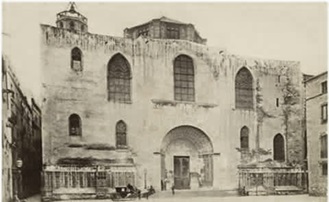 Porta principal de la Catedral de Barcelona el 1880, abans de l’inici de les obres de la nova façana neogòtica